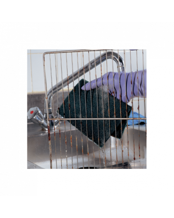 Constitué de fibres synthétiques recyclées, son abrasivité lui permet d'enlever les tâches les plus tenaces.