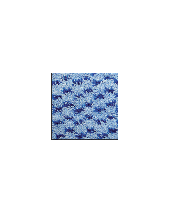 Micro bouclettes torsadées et incrustations « polypropylène grattant » bleu foncé. La structure tri-composition combine confort de glisse, action mécanique supérieure et désincrustation des salissures.